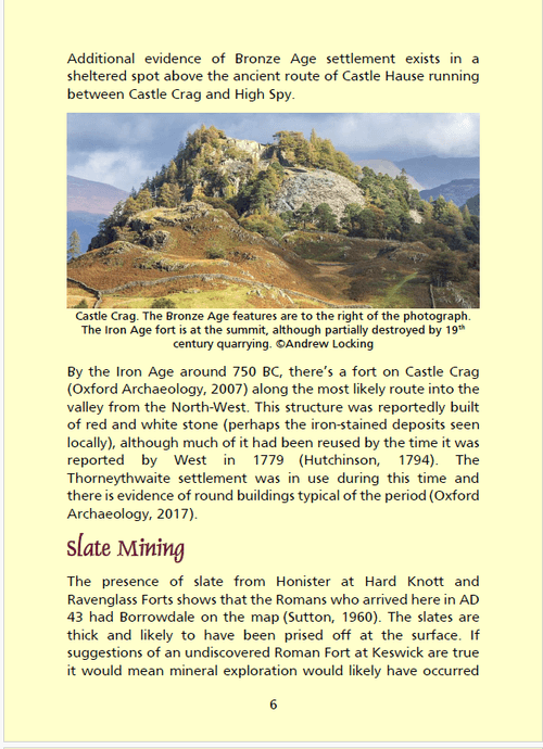 The impact of mining on the development of the Borrowdale Valley. Booklet describing the history of mining in the Borrowdale Valley and the links between mining and farming. 32 pages, A5.